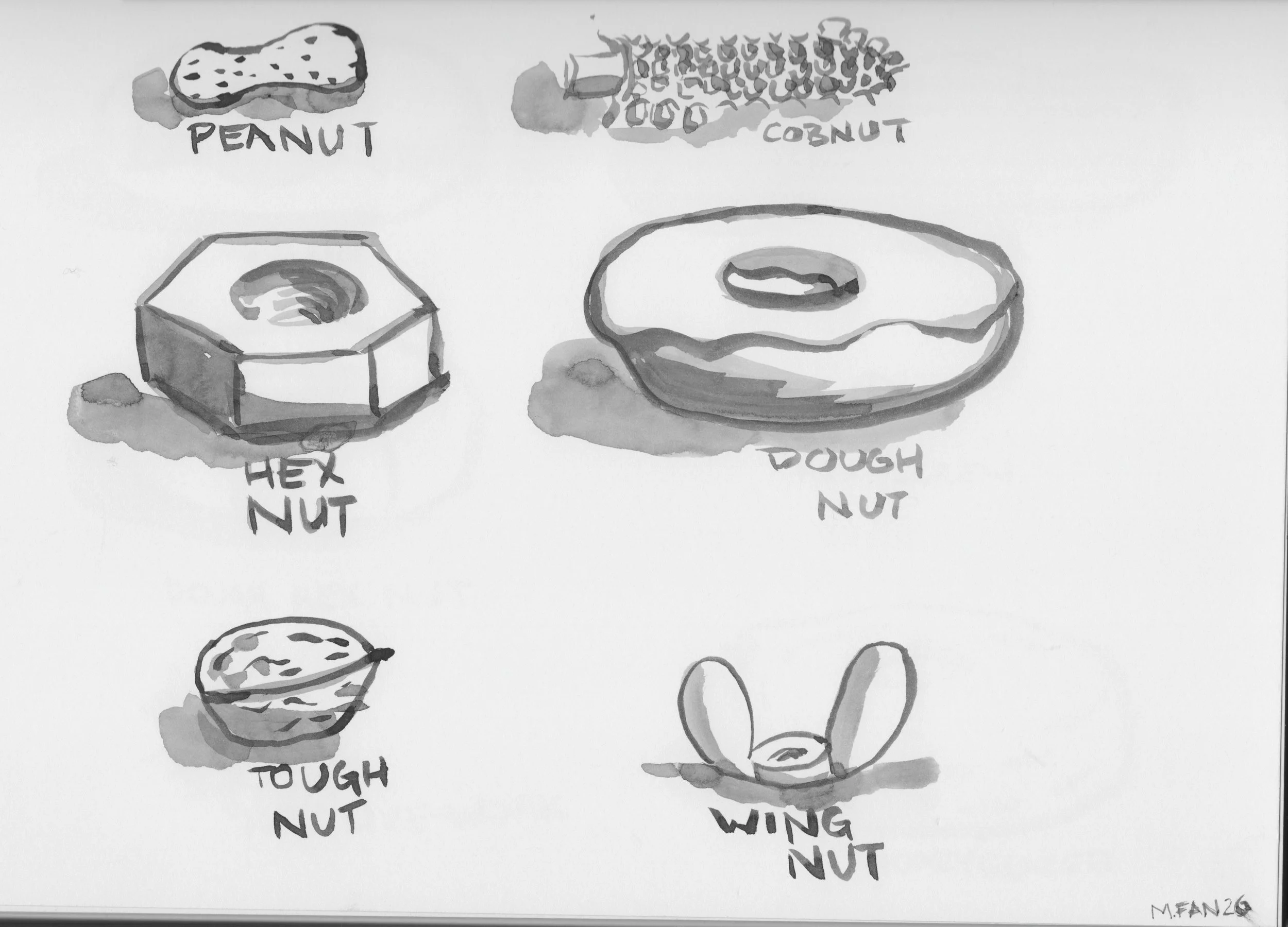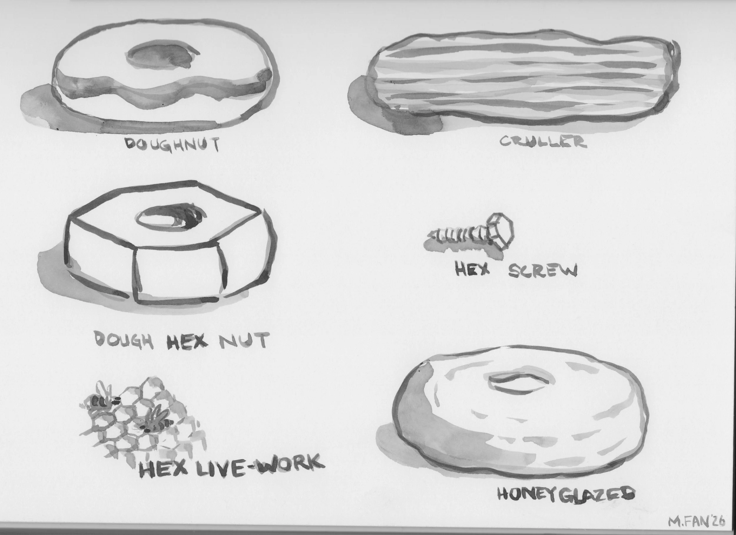 Thinking about the donut and hex nut led me down a nutty path… and so I went back to drawing donuts.